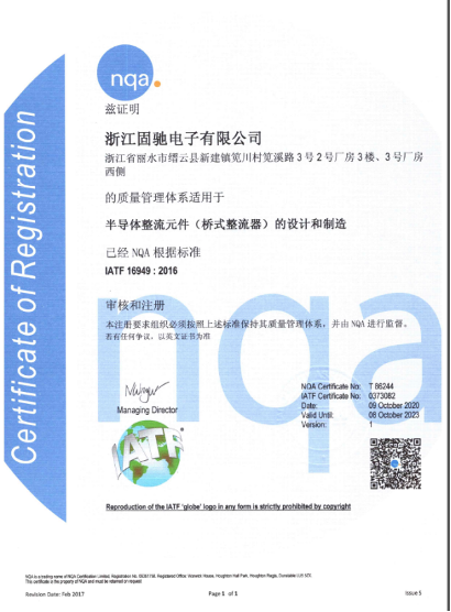 IATF16949汽車(chē)質(zhì)量認(rèn)證證書(shū)